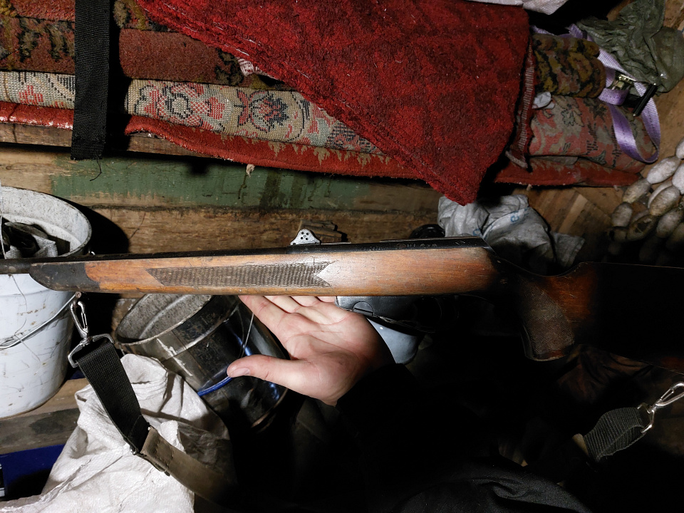 Во время обыска жилища подозреваемого полицейские обнаружили на полке и на веранде 3 единицы оружия. В комнате под диваном было найдено 79 патронов.