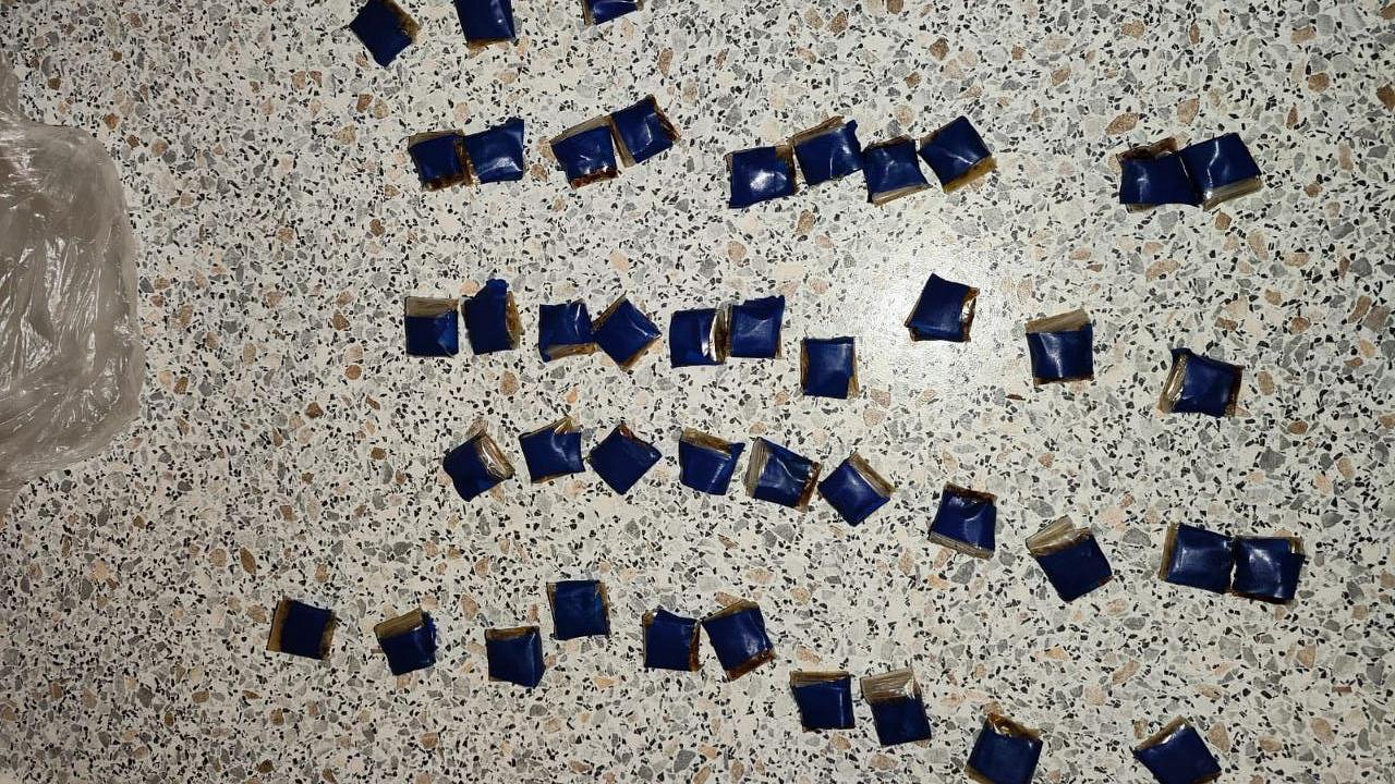 Прибывшие на место сотрудники Управления по контролю за оборотом наркотиков УМВД в ходе досмотра обнаружили в кармане одежды задержанного 15 свёртков с синтетическими наркотиками и 45 в рюкзаке.