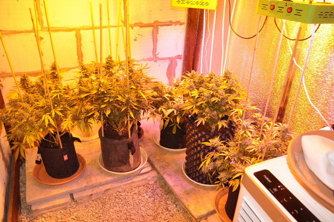 При проведении обыска домовладения подозреваемого полицейские обнаружили в надворной постройке специально оборудованную комнату для выращивания наркосодержащих растений. Из неё стражи правопорядка изъяли 64 куста конопли. Также в доме в мебели полицейские обнаружили пакет с, как установила экспертиза, марихуаной массой свыше 900 г.