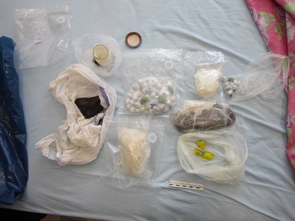 При личном досмотре у неё обнаружено и изъято 25 свёртков и два пакетика с порошком. Позже в ходе обыска по месту её жительства был изъят пакет с запрещёнными веществами.