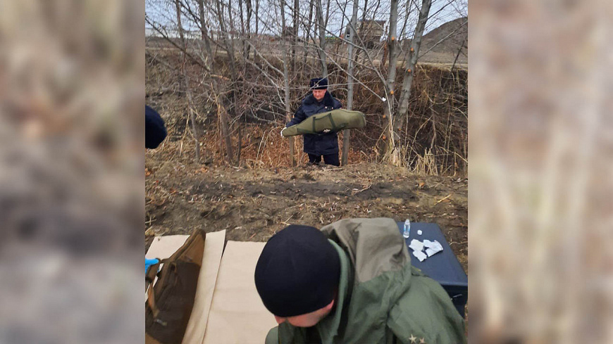 В рамках дальнейшей работы по сопровождению уголовного дела по п. а, ч. 1, ст. 258 УК РФ сотрудники полиции обнаружили в лесополосе недалеко от места разделки туши два чехла от охотничьих ружей.