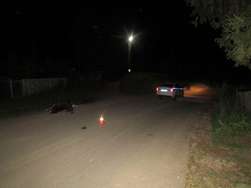 В минувшую пятницу наряд ГИБДД ОМВД России по Вытегорскому району Вологодской области нёс службу по обеспечению безопасности дорожного движения в селе Девятины. Около десяти часов вечера полицейские увидели двигавшийся мотоцикл с отсутствующим регистрационным знаком.