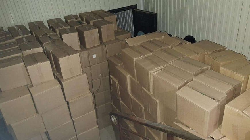 Полицейские обследовали складские помещения на территории торгового центра в городе Мирном, принадлежащие супруге злоумышленника. Оттуда изъято свыше 900 коробок, в которых было более 18 тысяч немаркированных бутылок водки трёх наименований.