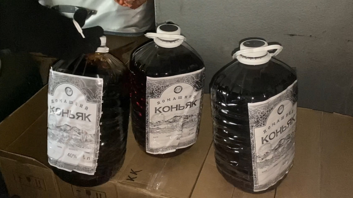 При осмотре помещения хранилища правоохранителями обнаружено и изъято 69 пятилитровых пластиковых бутылок немаркированной водки и коньяка. Общая стоимость изъятой продукции составила более 300 тысяч рублей.