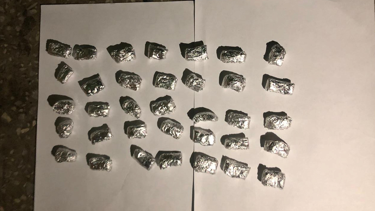 Во время личного досмотра у водителя был обнаружен и изъят свёрток из фольги внутри которого находился полимерный пакетик с кристаллообразным веществом светлого цвета. У пассажира также было обнаружено и изъято 72 аналогичных свёртка. Последующая экспертиза показала, что содержимое является наркотической смесью, содержащей a-PVP (а-пирролидиновалерофенон).