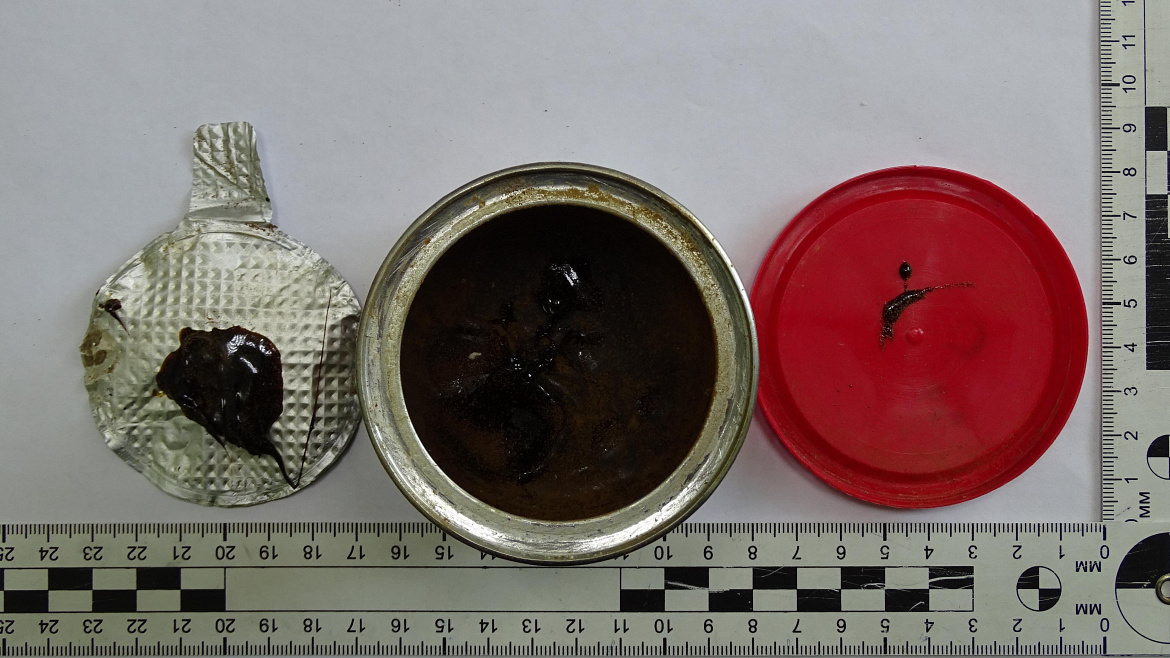 Затем при проведении личного досмотра в ручной клади задержанного была обнаружена банка из-под кофе с подозрительным веществом внутри тёмно-зелёного цвета. Содержимоё ёмкости правоохранители направили на исследование. Выяснилось, что это гашишное масло массой более 70 граммов.