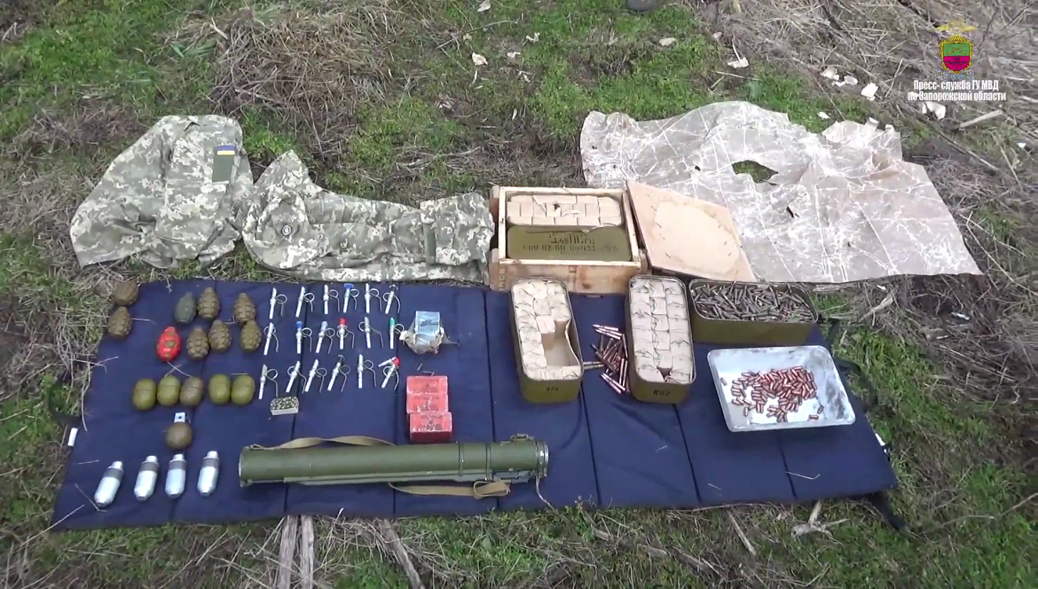 Оперативниками уголовного розыска ВУ МВД России в Запорожской области совместно с сотрудниками ГУУР МВД России, ВОГ и ОМОН Росгвардии обнаружен схрон с боеприпасами.