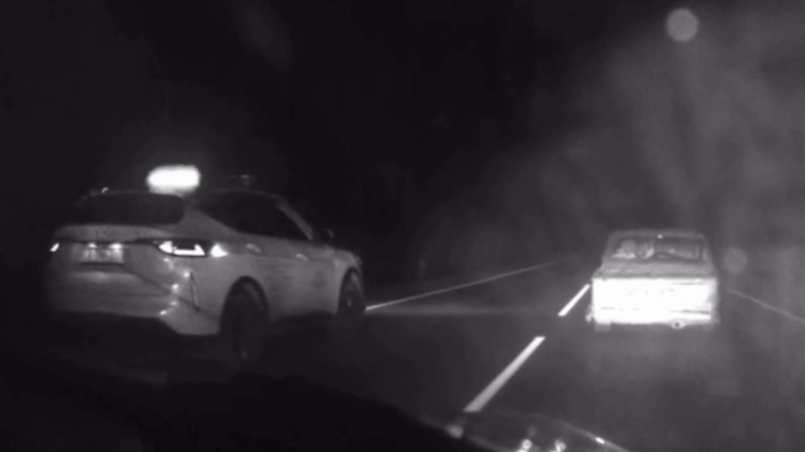 Автоинспекторы организовали преследование нарушителя, который в ходе завязавшейся погони выехал из населённого пункта и стал совершать опасные манёвры, подвергая опасности как своих пассажиров, так и других участников дорожного движения. Стараясь оторваться от сотрудников полиции, лихач 11 раз в нарушение ПДД выехал на «встречку».