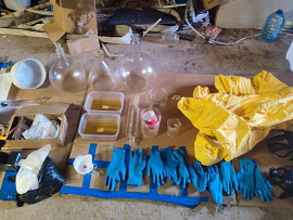 В дальнейшем на принадлежащем им дачном участке в гаражном боксе обнаружилась подпольная нарколаборатория. Помещение было оснащено вытяжкой, внутри установлено самодельное оборудование. В нём также находились прекурсоры и химические реактивы. Выяснилось, что подозреваемые, обладая знаниями в области химии, самостоятельно синтезировали мефедрон.