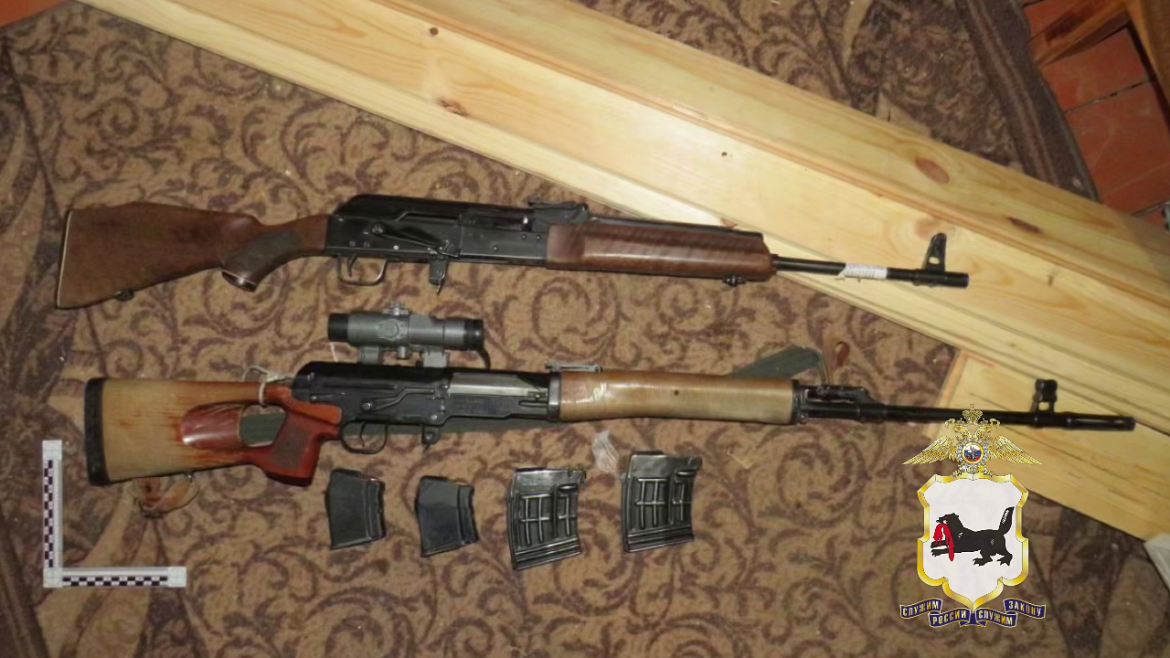 При обыске гостевого домика, в котором остановились задержанные, полицейские обнаружили и изъяли карабины «Сайга» и «Тигр» с двумя магазинами, 30 патронов, вещи со следами вещества красно-бурого цвета, похожего на кровь, и перчатки, на которых осталась шерсть диких животных.