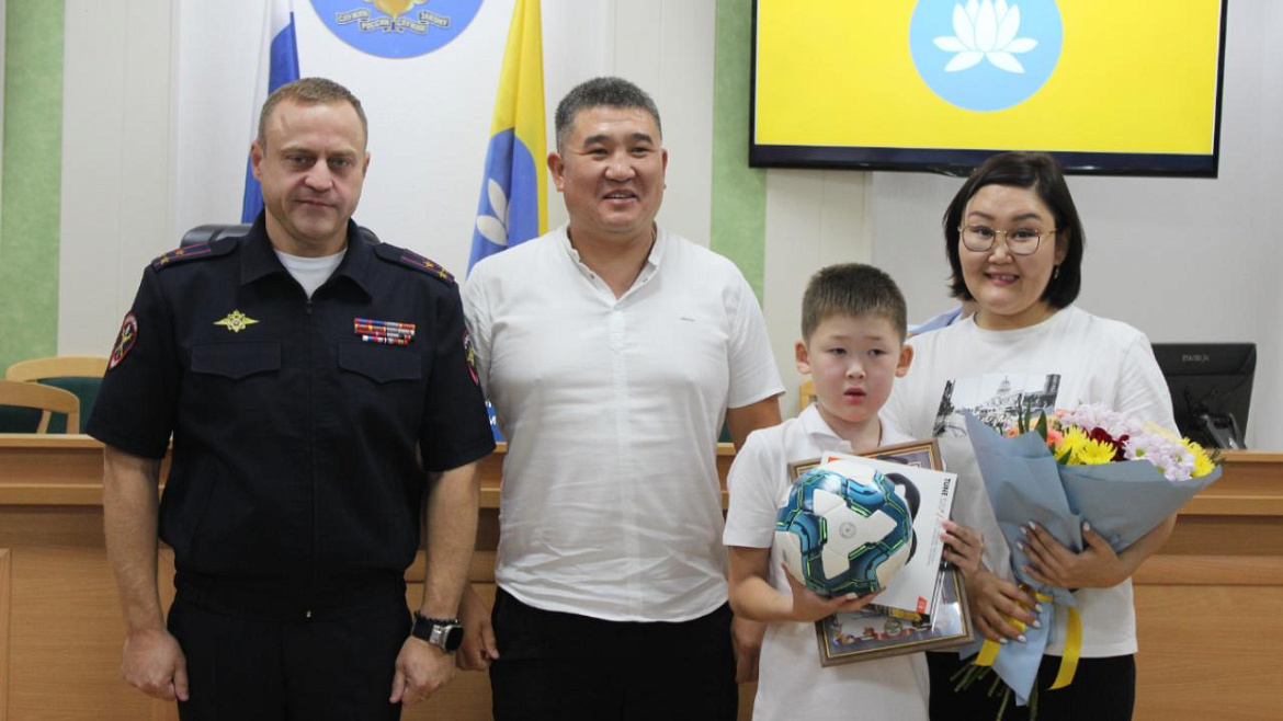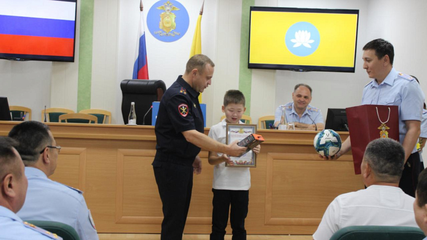 Министр внутренних дел по Республике Калмыкия полковник полиции Дмитрий Григорьев вручил 9-летнему жителю Элисты почётную грамоту, футбольный мяч и полноразмерные наушники. Таким образом правоохранители поблагодарили школьника за содействие в установлении правонарушителя.