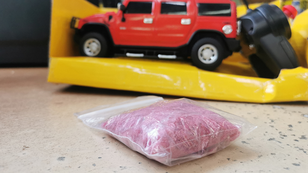 В ходе последующих оперативных мероприятий, стражам правопорядка стало известно, что злоумышленнику пришла посылка с крупной партией наркотика. Прибыв в логистическую компанию, оперативники вскрыли пришедшее на остров отправление. В коробке оказалась радиоуправляемая машинка, в корпусе которой был спрятан полиэтиленовый пакет с кристаллообразным веществом розового цвета и специфическим запахом. Проведенная экспертиза подтвердила, что в пакете находился концентрированный синтетический наркотик.