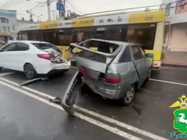 В попытке уйти от преследования лихач грубо нарушал ПДД, выезжал на полосу встречного движения и проезжал на запрещающий сигнал светофора.