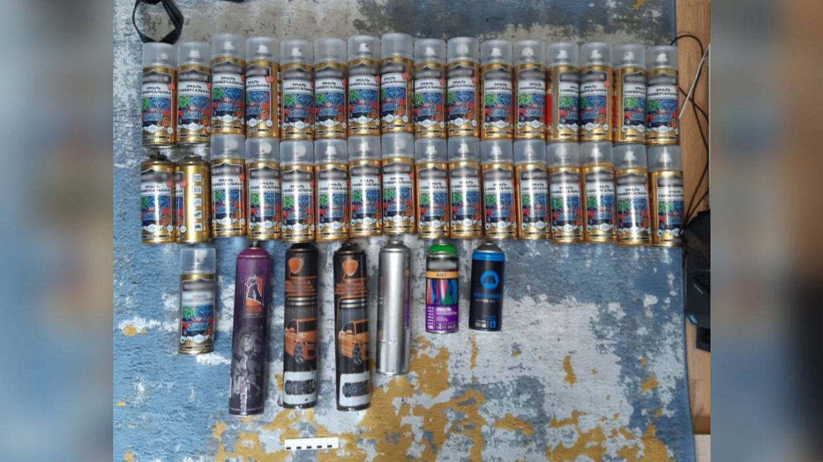 Юноша был задержан сыщиками по месту проживания. В ходе обыска оперативники изъяли использованные злоумышленником для совершения преступления 96 распылительных головок, 56 баллонов с красящими веществами, 14 пар перчаток со следами красящих веществ, пять мобильных телефонов, а также шесть тематических журналов.