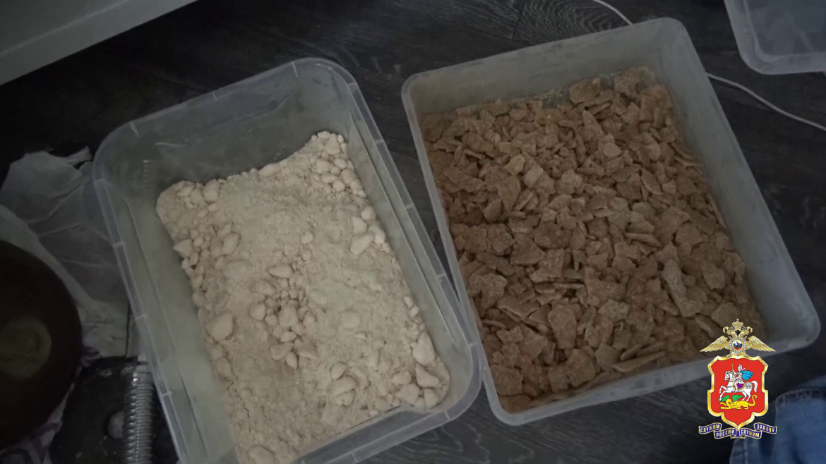 В квартире мужчины полицейские обнаружили и изъяли 19 упаковок с травяными брикетами и более 100 неизвестных таблеток, а также 10 контейнеров и вёдра с порошкообразным и комкообразным веществами, канистры с жидкостью, весы и упаковочные материалы.