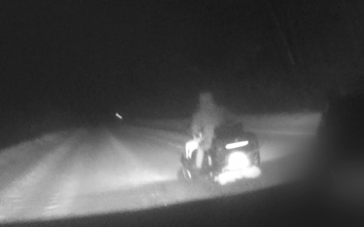 Когда сотрудники полиции подъехали на служебном автомобиле поближе, водитель гусеничного транспорта завёл двигатель и выехал на частично заметённую снегом асфальтированную автодорогу по направлению в с. Бондарка, где на скорости порядка 80 км/ч попытался скрыться. Однако после непродолжительной погони он был задержан.