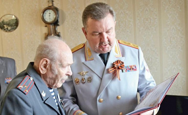 Начальник УМВД России по Тюменской области генерал-майор полиции Леонид Коломиец поздравил с Днём Победы участника ВОВ Петра Бабанина.