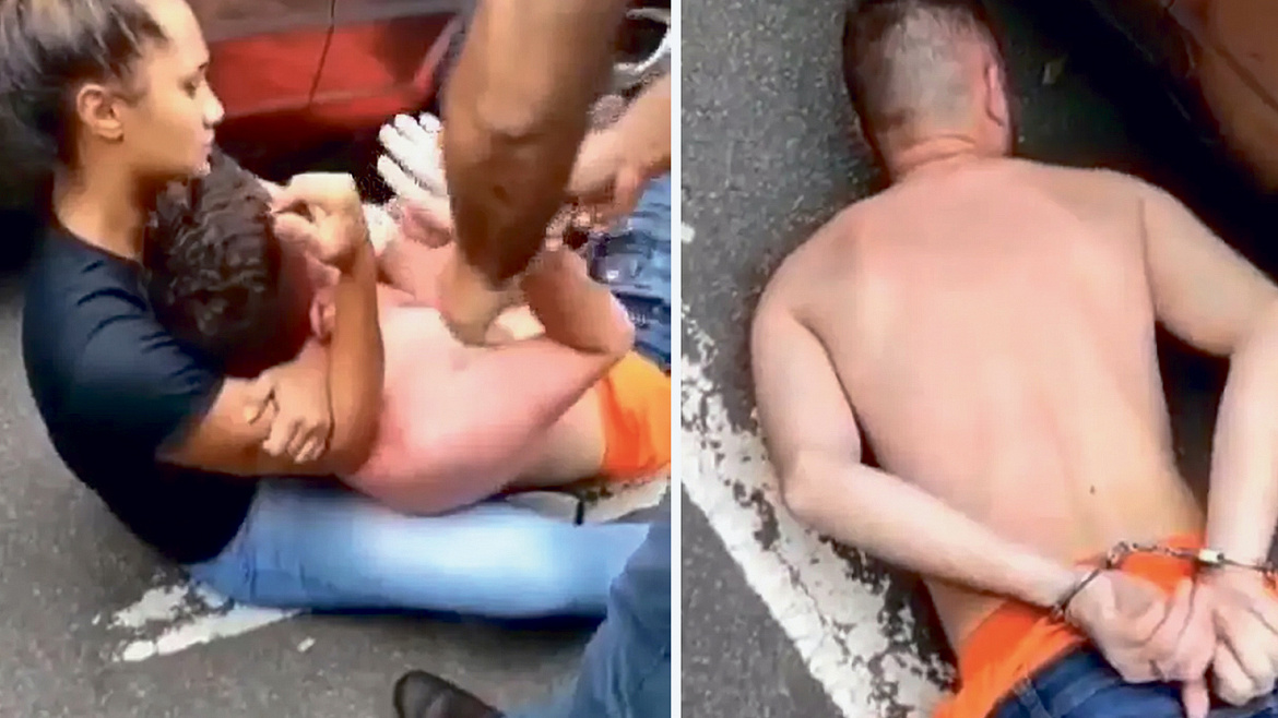 Когда правоохранители приехали на место происшествия, «потерпевшая» позволила стражам правопорядка надеть на мужчину наручники, затем с отвращением оттолкнула его и под аплодисменты собравшейся толпы удалилась.
