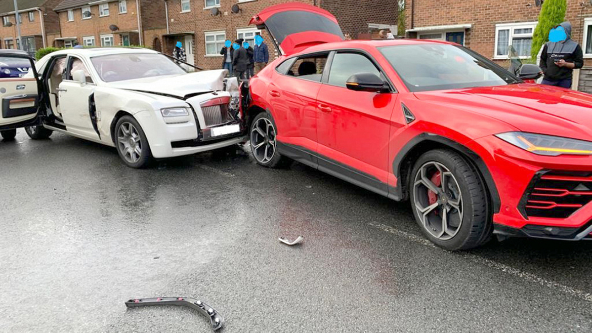 На странице подразделения полиции английского графства Уэст-Мидленс в соцсети появились фотографии дорожно-транспортного происшествия с роскошными авто: «Ламборджини» и «Роллс-Ройсом».