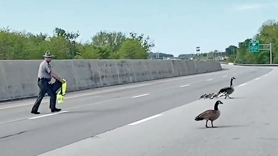 В американском штате Огайо дорожный патруль перекрыл движение на шоссе, чтобы спасти семью диких гусей. Пернатым понадобилась помощь стражей правопорядка для того, чтобы перейти дорогу.