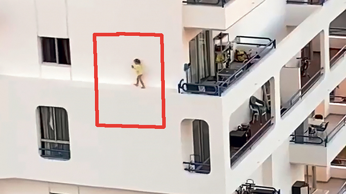 На Канарских островах постояльцы отеля увидели, как через окно здания напротив на карниз вылезла маленькая девочка и устроила… прогулку.