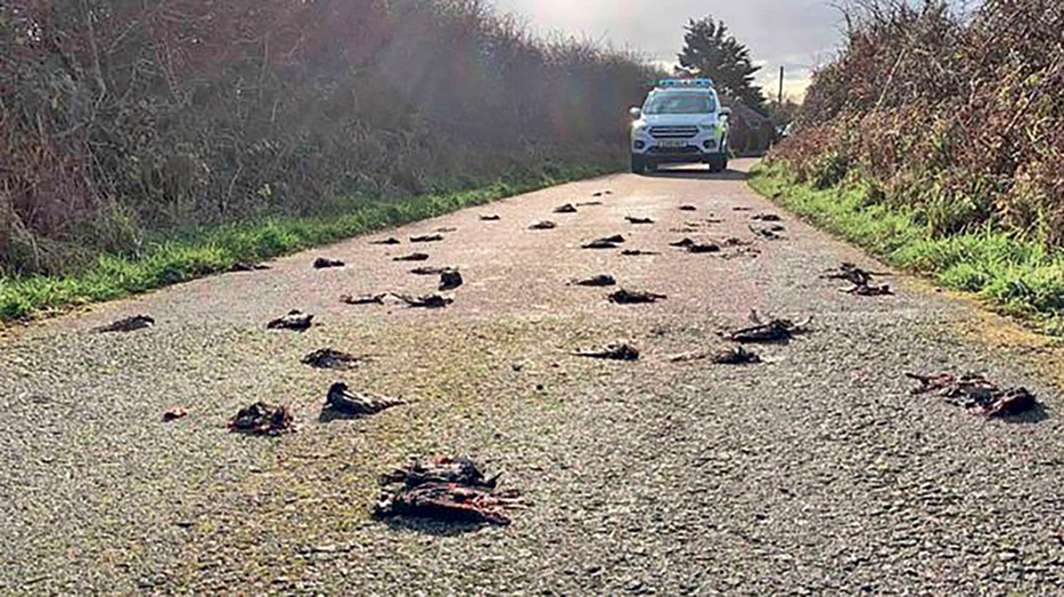 Сотни погибших скворцов найдены на дороге в Северном Уэльсе. Полицейские предположили, что, вероятнее всего, они разбились, спасаясь от хищника.