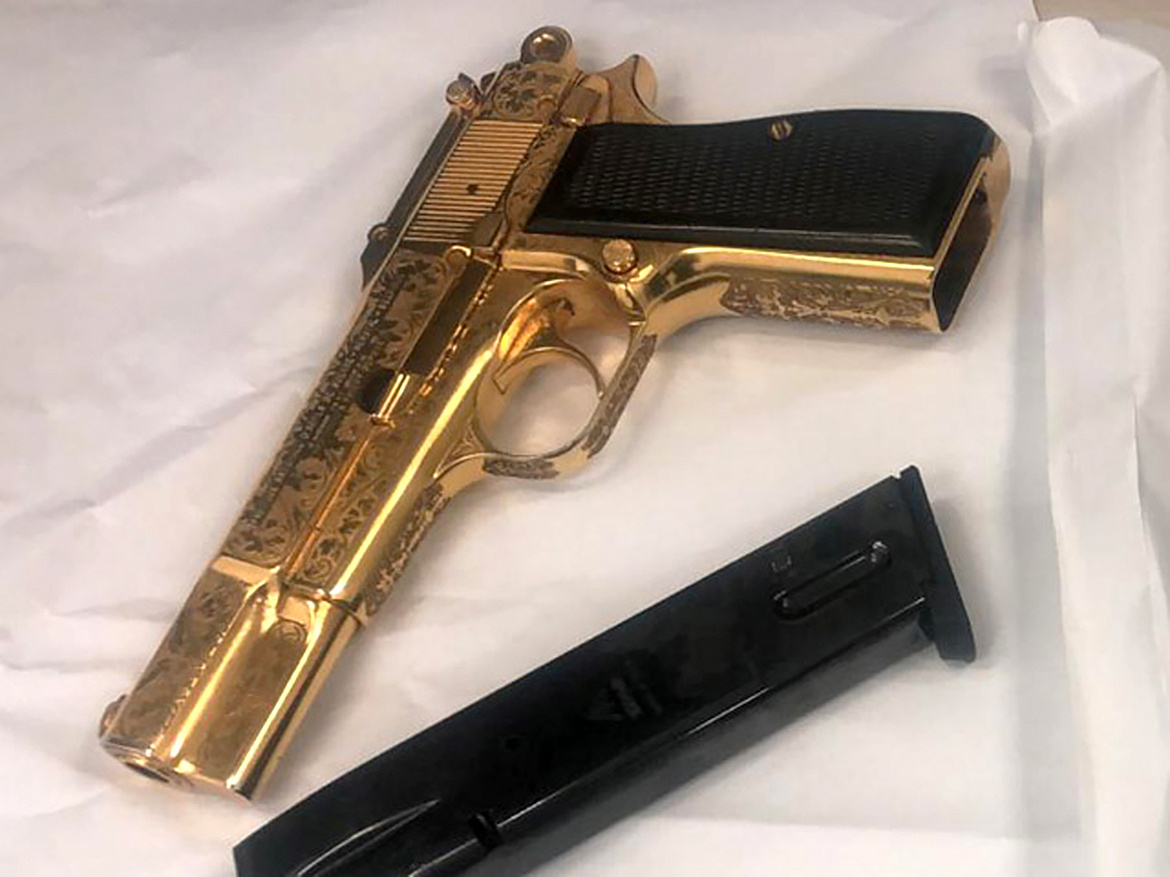 Однако вскоре силовикам пришло сообщение, что на месте проведения мероприятия слышна стрельба. Правоохранители вернулись и провели обыск. В одном из автомобилей силовики обнаружили два пистолета. Один из которых собран из деталей, выполненных под золото. Оружие конфисковали.