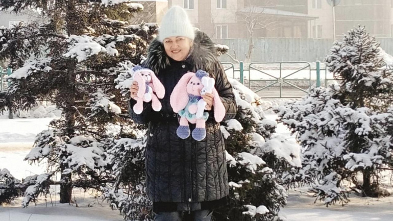 Над первыми зайчатами - символами 2023 года - Елена Сафина начала работать ещё летом. У неё есть традиция - вязать игрушки животных к зимнему празднику.
