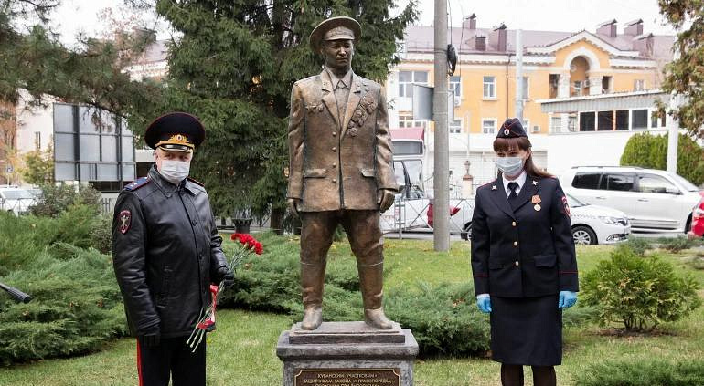В Краснодаре открыли памятник погибшим на службе участковым. Прототипом послужил майор милиции Иван Ковалёв.