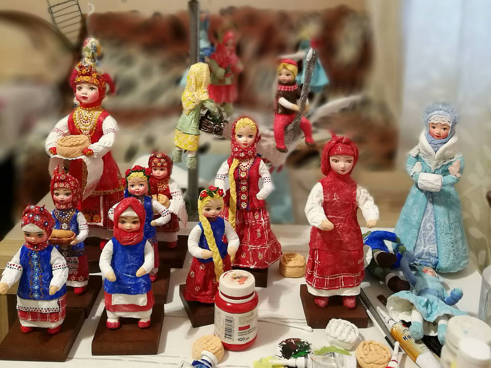 Творческий потенциал развивает, выкраивая свободные минуты по выходным или во время отпуска. Сейчас занимается изготовлением игрушек из ваты и клейстера по старинной русской технологии, которой её обучила подруга. Начальный этап - создание так называемого молда - заготовки для личика нового персонажа. В него заливается глина, запекается в печи, остаётся только нарисовать черты лица, и одна из самых главных деталей куклы готова. Затем нужно соорудить каркас из проволоки, на который будет крепиться состав из ваты и клейстера. Для такого замысловатого дела требуется специальное оборудование, поэтому Оксане пришлось переделать одну из комнат квартиры в мастерскую. Самый интересный этап начинается, когда полностью готовая модель куклы высохла и ждёт покраски. Тут и происходит магия творчества. Одной лишь кистью автор способна придать новому образу уникальные эмоции, будь то радость или слёзы разочарования. Украсить личико румянцем, добавить будто только что упавшие снежинки на одежду или растрепать волосы, словно это сделал ветер. Полёт фантазии кукольницы не знает границ.