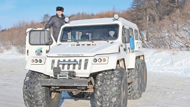 Пробраться на снежные просторы Охотского моря в случае необходимости можно лишь на специальной технике.