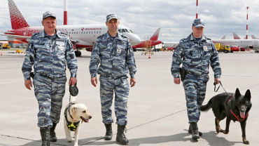 Репортаж о работе специалистов кинологической службы ЛУ МВД России в аэропорту Шереметьево.